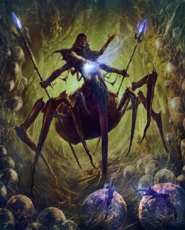 La loro società è rigidamente matriarcale e ruota attorno alla figura della Regina, centro di culto e autorità assoluta. Sebbene non si conoscano bene i loro riti, si ritiene che venerino la dea elfica Kelthra e antiche divinità aracnoidi di origine umana.
