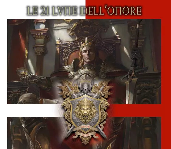 Poi fu la sera della vigilia della fine delle 21 lune, la notte che celebrava gli Eroi prima di una battaglia. Il castello si aprì e con esso la sala dei Pretoriani dell’Imperatore, lasciata libera per accogliere Legione e Templari festanti, tra vino Rosso di Amon e carni alla brace. Quella sera nessuno doveva indossare gradi o divise, poiché come fratelli uniti da medesima storia dovevano prepararsi alla battaglia del giorno seguente.