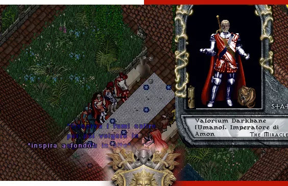 Invitato dalla Templare dell’Oracolo Victoria, quando Valorium giunse sul terrazzo del Palazzo dell’Acqua fu accolto dagli amoniani schierati solennemente e la sua presenza, a volte paterna, a volte ruvida e rude, rese fieri i Leoni dal manto Cremisi. Il carbone ardente nel braciere cerimoniale consumava le foglie mistiche, i cristalli di diamante, incastonati sul candido tappeto, riflettevano quella serena luce durante un semplice e intimo cerimoniale.