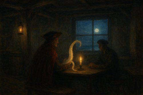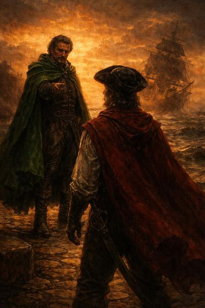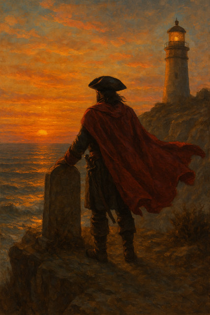 Vi fu una breve pausa e il silenzio rese ogni cosa immobile. Doblone tolse il tricorno e lo girò tra le mani, osservandolo. Il mantello scarlatto, ormai logoro e più volte rammendato, giocava con la dolce brezza della sera.