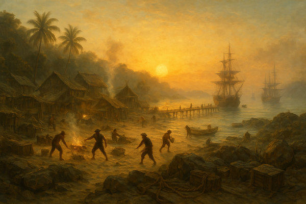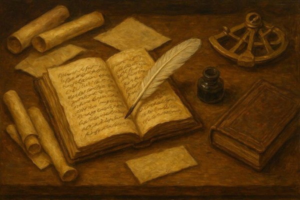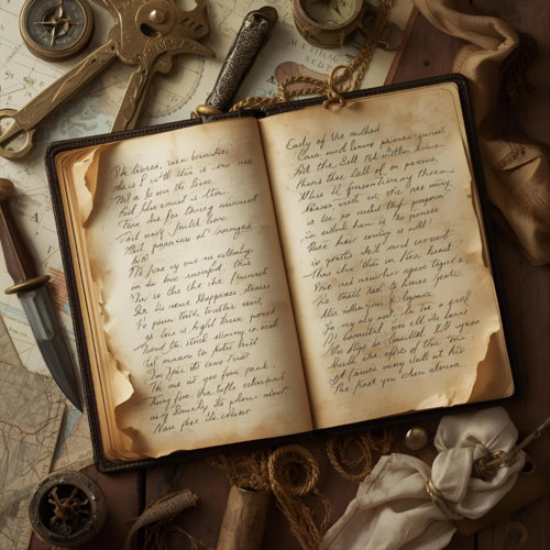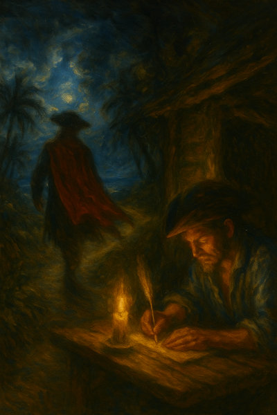 Quell’estate era tornato a racimolare e a consultare quanto più materiale possibile. Fu un lavoro lungo, estenuante, che spesso lo fece crollare per la fatica sul piccolo scrittoio della sua cabina. Più di una volta si era svegliato di soprassalto ancora seduto sulla sua sedia scricchiolante e con un balzo si era gettato sul letto per riposare qualche ora. Non appena apriva gli occhi, tornava immediatamente a consultare quell'immensa mole di scritti, spesso dimenticando anche di mangiare o di girare per l’isola. Unica compagna fedele la sua riserva di bottiglie di grog.