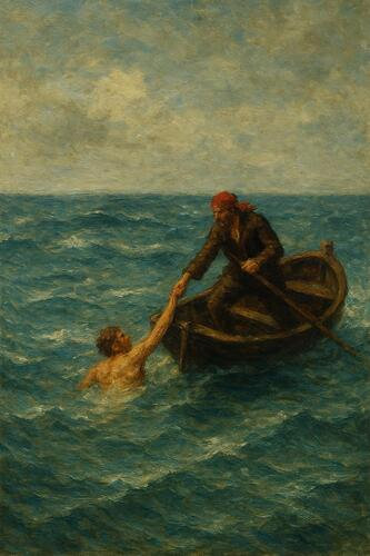 Preso il necessario, guardò per l’ultima volta la sua casa e si imbarcò come clandestino sulla prima nave, tuttavia la sfortuna fece sì che in una tempesta tutti i passeggeri morirono...tutti tranne uno...tutti tranne lui.