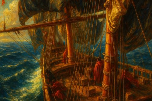 Presto il tramonto si fece vicino e il sole decise di lasciare il posto alle stelle. Ormai stanco, Vahagart si addormentò proprio con il suo adorato mare vicino che gli cantava la sua musica. Un vento gelido sfiorò l’animo del ragazzo. Si svegliò come istintivamente. Davanti a lui il mare era cambiato: appariva nervoso e sembrava che qualcosa stava per scatenarsi, qualcosa di grosso.