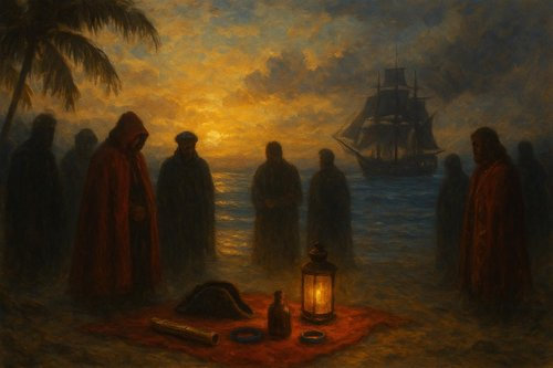 Il giorno 22 del corrente mese, alla ventiduesima ora, si commemorerà la morte del valoroso capitano dei Corsari Scarlatti Henry Morgan sull’isola sperduta nel profondo sud chiamata Tortuga. In questo luogo vi saranno tutti coloro che vorranno rendergli omaggio e, per una volta sola, che sia per tutti un momento di pace e fratellanza. Che le barriere, razziali e non, cadano in questo giorno di lutto, che Tortuga si riempia di preghiere e soprattutto di grog.