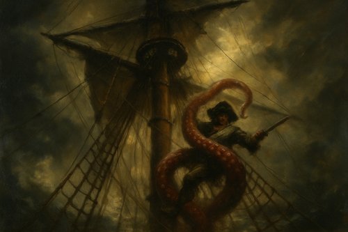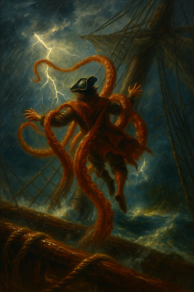 Per tornare alla nostra storia, posso dirti che tante furono le avventure per mare dei Corsari Scarlatti ma la più bella fu probabilmente quella in cui abbattemmo la madre dei kraken: un enorme kraken bianco di una grandezza assurda!».