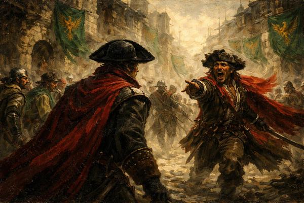 Ciò che è certo è che questi si oppose all’imperatore, sferrando un attacco a sorpresa contro le truppe della Capitale la sera del 14 Postapritore 269. Al suo fianco si schiereranno i Corsari Scarlatti.