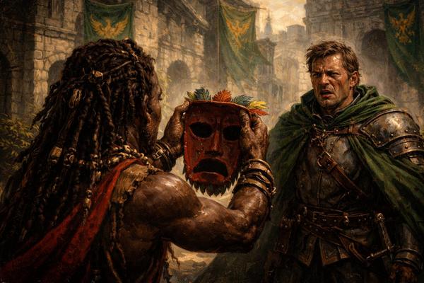 “Ad una condizione, però: deve mostrarsi a volto scoperto e farsi ritrarre”. Bene, pur di evitare problemi, questo ed altro. Aveva trascurato, però, di prendere in considerazione il cuore dell’armato: appena visto il suo volto sfigurato, prima una smorfia di disgusto gli contrasse i lineamenti per poi cominciare a schernirlo ed umiliarlo nei modi peggiori, come neanche un selvaggio qwaylar avrebbe potuto fare.