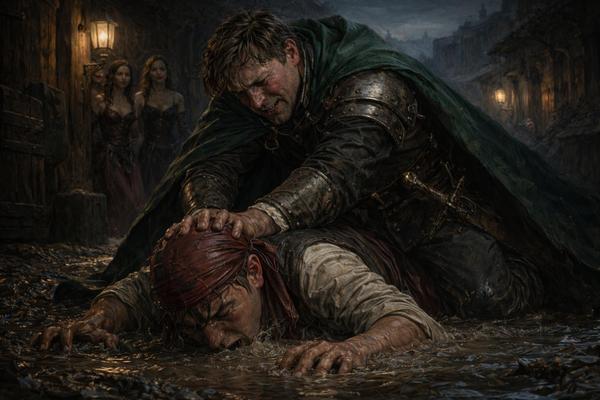 Già, sadici e senza cuore: come l’ex reggente, ubriaco peggio di un fiasco di vino elfico, che pur di far colpo su due signorine dalla dubbia fama non ha disdegnato di malmenare il povero Ancora, sbattendolo infine in una pozza di fango e quasi annegandocelo dentro a viva forza.