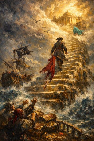 Vi fu una breve pausa e il silenzio rese ogni cosa immobile. Doblone tolse il tricorno e lo girò tra le mani, osservandolo. Il mantello scarlatto, ormai logoro e più volte rammendato, giocava con la dolce brezza della sera.