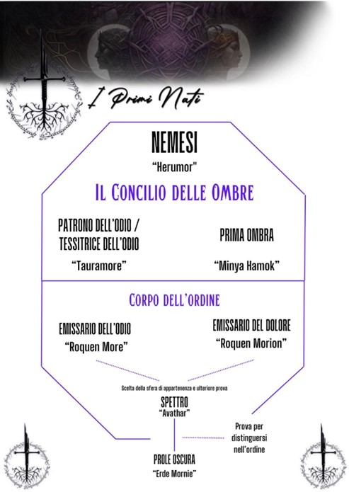 La gerarchia si ramifica subito dopo nei vertici, a completare il Concilio delle Ombre.