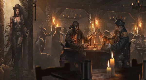 Le svariate insenature lasciano intravedere splendide spiagge incustodite ma nulla di più. La giungla tropicale si estende poi lungo la parte est divenendo sempre più fitta e cupa. Le urla delle scimmie, il rapido battito degli uccelli che prendono il volo staccandosi dalle fronde degli alberi e gli inquietanti rumori del sottobosco sono tutto ciò che si riesce ad udire dalle acque cristalline a largo dell’isola. Solo quando si giunge nella zona meridionale Tortuga mostra la sua parte più nascosta: lì dove si erge più alto il frontone roccioso della costa è stato costruito un ampio molo. Tra tutte le imbarcazioni ormeggiate spicca la Perla di Danu, il vascello più maestoso di Ardania. Sul suo ponte gli ufficiali discutono della prossima razzia per mare o decidono le sorti di qualche sventurato catturato dopo aver adempiuto ad una lettera di corsa.