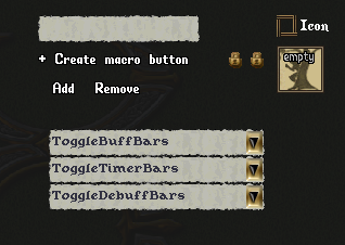 Per visualizzare i tre gump dei cooldown (buff, debuff, timer personalizzati), è necessario assegnare una macro tramite il menu delle opzioni. I tre gump possono essere richiamati singolarmente o assegnati a combinazioni di tasti rapide per l’accesso immediato durante il gioco.