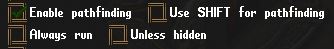 - La prime due opzioni regolano il pathfinding (ovvero il pg cercherà di arrivare da solo nel punto indicato). La prima opzione lo abilita, Una volta abilitato, doppiocliccando col tasto destro su un punto lontano si abiliterà il pathfinding.