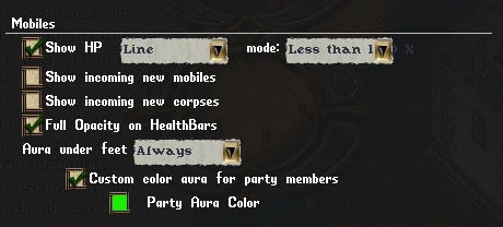 - Show incoming new mobiles. Se attivata, farà apparire i nomi degli NPC, dei mostri e tutti i “mobiles” quando entreranno nella schermata visiva del PG.