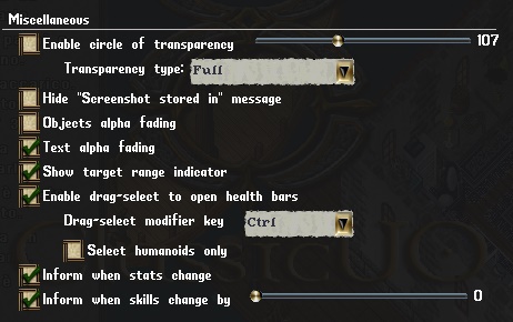- Use standard skills gump. Permette di visualizzare il classico menu di skills di Ultima Online, invece della versione moderna.