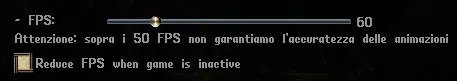 Queste opzioni riguardano gli FPS (Frame per Second) che influsiscono sulla fluidità delle animazioni in game. Maggiore è il numero sulla sliding bar maggiore sarà la fluidità ma maggiori saranno anche le prestazioni richieste al vostro PC.