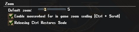 - Enable mousewheel for in game zoom scaling (Ctrl + Scroll). Se selezionato sarà possibile aumentare e diminuire lo zoom in gioco con la combinazione di tasti Ctrl + Rotellina del mouse.