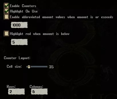 - Highilight red when amount is below: evidenza il numero di oggetti nel counter in rosso se si raggiunge o si scende sotto il valore impostato nel campo sottostante.