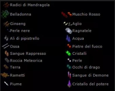 Gli incantesimi più potenti, come le evocazioni, richiedono una quantità maggiore di reagenti oppure materiali più rari e costosi. Tutti i reagenti sono acquistabili presso il vendor mago.