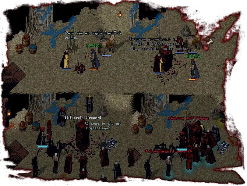 Mi trovavo all’interno delle nuove miniere alla ricerca di minerali utili per la realizzazione di armi e armature; cercavo di contribuire al sempre costante bisogno di materiali coi quali approvvigionare l’esercito. Scavavo già da qualche tempo quando improvvisamente dalla roccia smossa dalla punta del piccone notai emergere delle schegge. Avevano un colore rossastro lievemente annerito, non avevo mai visto una roccia simile. Ero molto soddisfatto poiché il ritrovamento di un nuovo filone di materiale prezioso poteva rivelarsi molto utile per Nolwe. Così decisi di consultare Hassan, il mastro minatore, e assieme decidemmo di estrarre qualche pietra che fosse più consistente delle piccole schegge emerse sino ad allora. Con grande stupore però, poco tempo dopo aver cominciato a scavare, ci rendemmo conto del fatto che quello che ci si parava innanzi era un solido blocco di roccia. Continuando a scavare permettemmo alla sommità di quello che sembrava un monolite di fuoriuscire e in breve tempo riuscimmo ad estrarre ulteriormente la roccia, tanto che la sua sommità superava di poco la nostra altezza. Tuttavia la grande pietra sembrava affondare ancora nel terreno.