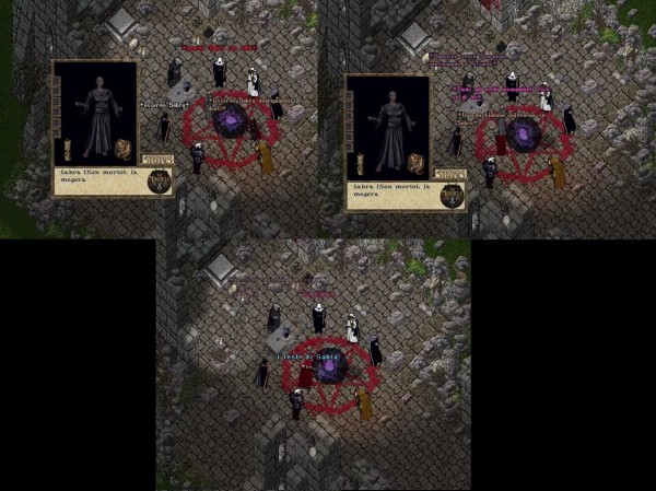 Il sigillo ribollì e al centro di esso emerse una vorticante sfera di miasma oscuro, la connessione con l’Abisso stabilita aveva trascinato fra i presenti Sabra il cui spettro, mediante la reliquia, riacquisì corpo.