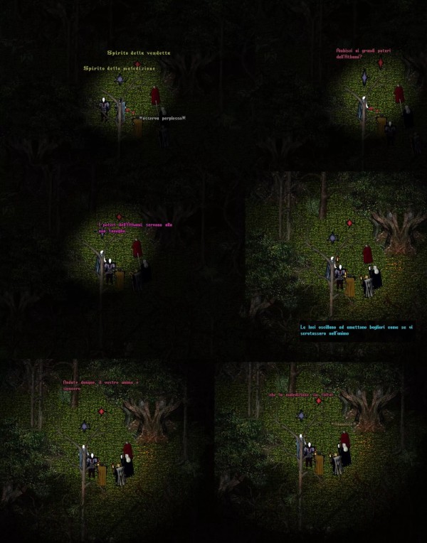 Ringraziato il gruppo di Qwaylar che li aveva preziosamente assistiti, era giunto il momento di far assolvere all’Athami il compito per il quale era stato destinato: Buio aprì un varco arcano e tutti i Fratelli raggiunsero così la Foresta.