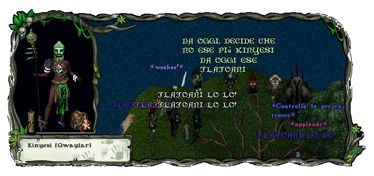 E quella sera un altro grande evento fece danzare gli spiriti di Xochipilli nell’animo della Tribù: un nuovo Tlatoani ascese a guida del popolo di Timata Ora, che dopo la sparizione di Yoruba attendeva un nuovo capo. Il primo atto di Kinyesi, che da quel momento sarebbe stata conosciuta col nome di Spire Nere, fu di riconoscere l’aiuto ricevuto dai presenti e di garantire che la Tribù sarebbe intervenuta in sostegno di coloro che avevano contribuito a sventare la minaccia.