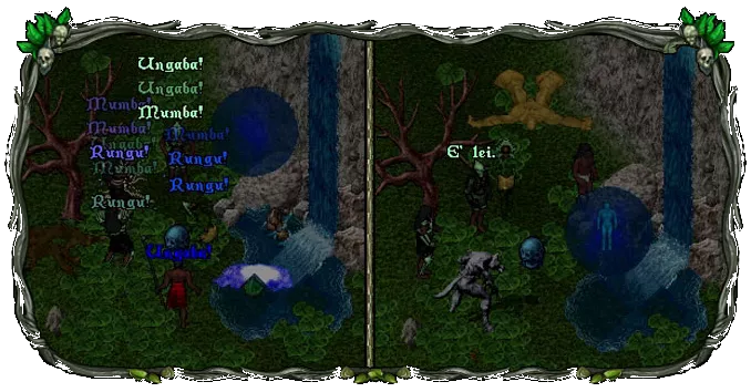 La Tribù allora aveva innalzato canti e fatto danze intorno alla sorgente, e il rito aveva purificato la fonte. Alla fine del rito lo Spirito di Mami Wata si era mostrato nella Grotta Sacra rivelando che l’Uomo scuro era tornato su Yarda e che avrebbero dovuto trovarlo e ucciderlo.