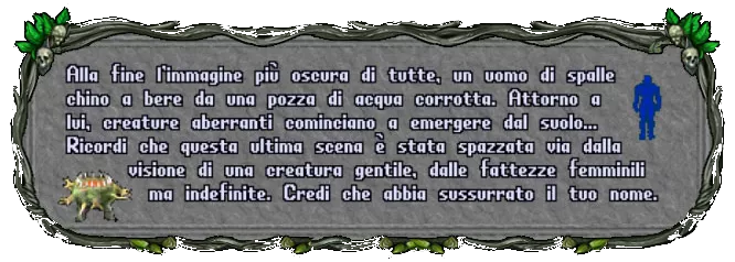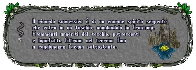 I Qwaylar, però, avevano portato con loro Sakapta. Lo Spirito riuscì a vedere ciò che i loro occhi mortali non riuscivano a scorgere, ovvero la fonte della corruzione in cui risiedeva lo spirito maligno: il teschio nero. Era il teschio a insozzare l’acqua, e dall’acqua le creature viventi.