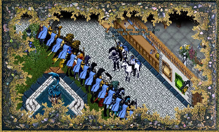 E lievi erano le parole della guida azzurra, nell’inneggiare lo scopo religioso della città, i Marilla come un faro nel culto di Elentari, e fieri erano gli elfi che avevano il privilegio di ascoltare il nobile membro delle Onde Dorate, il loro Re.