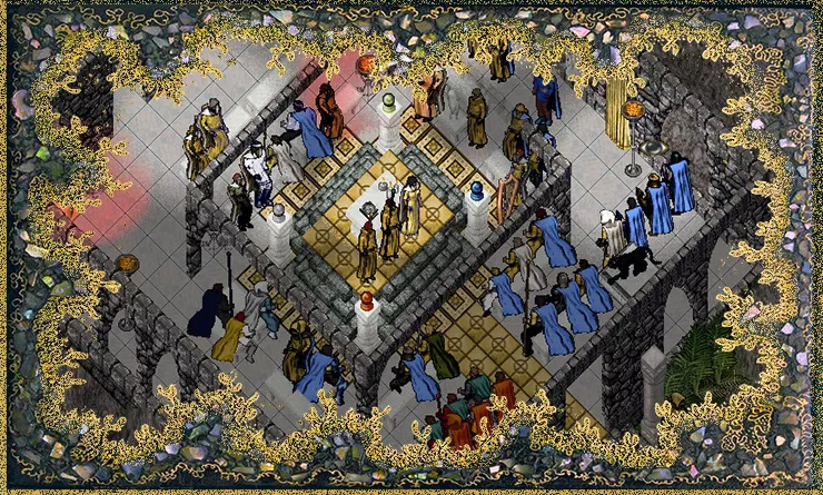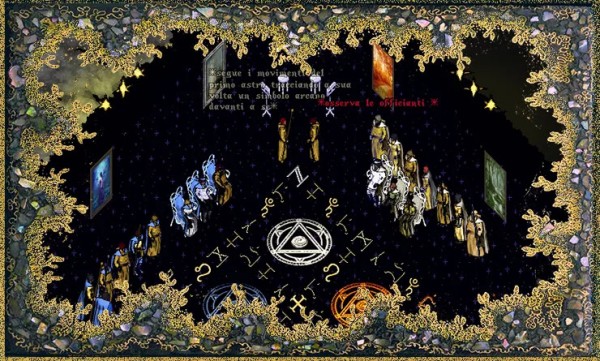 La Delegazione del Buon Risveglio, il clero antico, mistico ed arcano di Morrigan, attendeva, immoti i celebranti con le loro maschere rituali fissavano i presenti, senza un solo suono, senza un movimento, al seguito del Vertice, Tingilya Palantir, che proteggeva e favoriva l’evento.