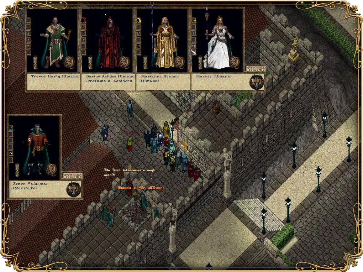 Dietro di loro una figura in penombra iniziò ad avanzare su richiesta della Somma Sacerdotessa: Zenon Valdemar si fece innanzi focalizzando su di sé l’attenzione dei presenti che iniziarono a porsi domande sottovoce, confusi da quella presenza. Zenon il matto, il musico che da tempo era stato lontano da Hammerheim era tornato ed era su quel tetto…perché?