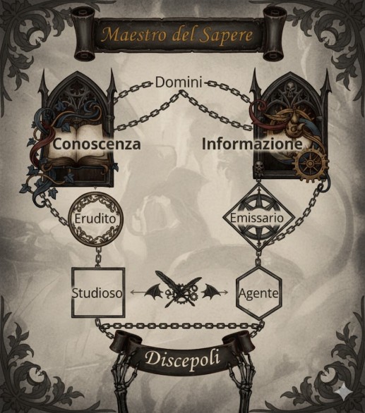 Superato il periodo di ambientamento e dimostrate fedeltà e serietà verso Loknar e la Rete Nera, il tutore porterà il Discepolo a colloquio direttamente con il Maestro del Sapere, che dopo un confronto ne determinerà l’ingresso ufficiale in uno dei due Domini.