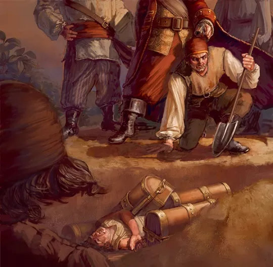Potrai però provare a guadagnarti rispetto come "addetto a depredare il nemico inerme", ruolo di grande prestigio e dall'interessante carriera. Si narra, per esempio, che il mozzo Ancora, durante la rivoluzione di Hammerheim, abbia accumulato dai corpi degli avversari un bottino di 37 armature tra metallo e pelle, 12 armi a distanza, 14 armi bianche, 4 cavalli, 1 cuore umano, 2 dozzine di schiave tremecciane, 1 galeone e svariate mentine al grog.